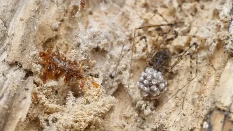 זחל טורף חדש באי אואהו שבהוואי לובש את שרידי טרפו כהסוואה.