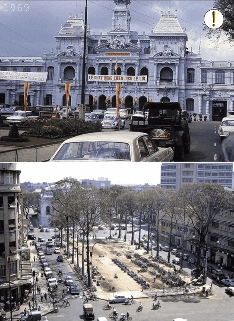 התמונות מציגות גם את השינויים ברחובות העיר, כמו המקום שבו נמכרו עיתונים עם הכותרת על נסיגת הכוחות האמריקאים, לצד תמונה עדכנית של אותו מקום. כמו כן, ניתן לראות את המקום שבו נחתו הכוחות האמריקאים בדא נאנג, וכיום ילדים משחקים שם.