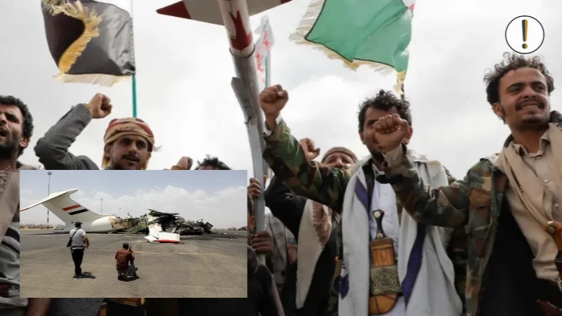 הערכת נזקים בשדה התעופה בצנעא לאחר תקיפה ישראלית